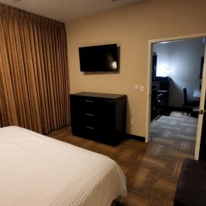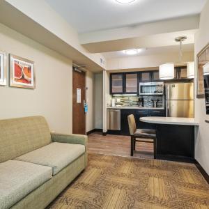 Great location, very convenient as I was attending a conference at the convention center which was an easy walk. Central for public transportation as we did not have a car.Space was nice. Good clean room with a nice bed and shower. Desk was helpful to do computer work. Love having a kitchenette (full fridge/microwave/sink/stove/dishwasher). Also enjoyed the pool/hot tub and included breakfast every morning!
