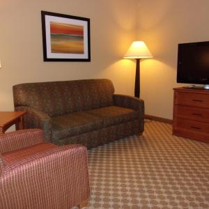 - Pictures showed a tv by the jacuzzi in the suite and there was none. Also electric fireplace was broken, carpets were ripped, jacuzzi in room had hairs in it. Pool does not have a Jacuzzi any longer as advertised