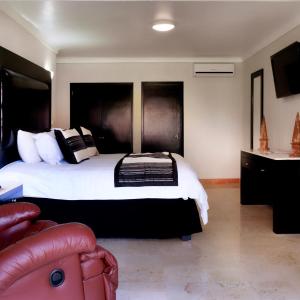 This traditional hotel is located in the city of Leon, Mexico. The hotel offers an on-site art gallery, restaurant and an outdoor pool surrounded by gardens. Free WiFi is available. The spacious guestrooms at Real de Minas offer views of the city. Private bathrooms include free organic amenities. The Cassia restaurant at Poliforum Real de Minas serves traditional Mexican cuisine. Room service is also available.