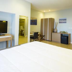 - The TV in my room wasn't work properly. It' s like a black and white TV they need to fix or change the cable company that they have. The bathroom door can't closed. Other than that everything was great.