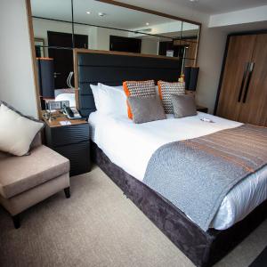 Offering free WiFi and free parking, the stylish 4-star hotel Crowne Plaza Gerrards Cross is ideally located in Beaconsfield, in the heart of Buckinghamshire, just a few minutes' drive from both the M40 and M25 motorways. Guests can enjoy cocktails and drinks in the bar, and there is a fitness center and onsite spa. Crowne Plaza Gerrards Cross offers well-appointed rooms with comfortable beds and luxurious bed linen. Rooms come complete with a TV and tea/coffee making facilities. Every room has an private bathroom with either a bath or shower. The on site Restaurant and Bar offer a comprehensive selection of dishes influenced from the local area, freshly prepared. There is a wide variety of breakfast options available including cooked options, Continental and fresh fruit. The fitness and wellness center features a 15-yard indoor pool, with spa pool, sauna, steam room and feature shower. Spa treatments are also available including facials, massage and beauty treatments. The gym has a range of cardio equipment and a spin studio, and fitness classes are also available. Crowne Plaza Gerrards Cross has 7 meeting rooms with the largest room accommodating up to 300 people. Heathrow Airport is 25 minutes from the property by car, and from Gerrards Cross or Beaconsfield train stations Central London can be reached in 25 minutes. Warner Brothers Studio is 13 miles away.